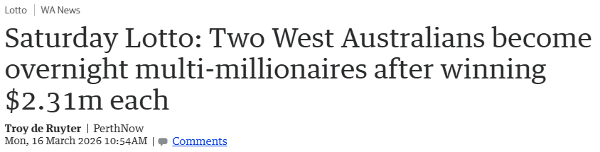 Lotterywest周一表示,截至目前仍在等待两名中奖者主动联系领取奖金。