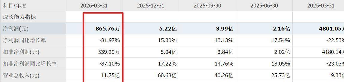 就在几个小时前,A股刚刚收市,盘面还带着一丝暖意。 但到了晚上,画风突变。 像是约好了一样,一批公司扎堆公布了它们2026年第一季度的成绩单。 粗略一数,光是净利润同比下滑的公司,就有52家。 这还不是最吓人的,关键是这里面有不少熟悉的面孔,过去一年里,被无数资金追捧、股价翻了五六倍甚至十来倍的“大牛股”、“赛道龙头”,它们的名字赫然在列。
