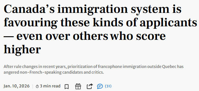 这意味着,在一套号称“按分数择优”的移民系统里,近一半的邀请,优先给了会法语的人。